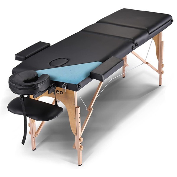 Esta camilla de masaje portátil de aluminio plegable en tres posiciones es ideal para un masaje relajante. Cuenta con reposabrazos y un soporte para el rostro ajustable y extraíble con orificio para el rostro. La espuma de alta densidad garantiza la máxima comodidad, mientras que la superficie de vinilo resistente al agua y al aceite permite una limpieza fácil.