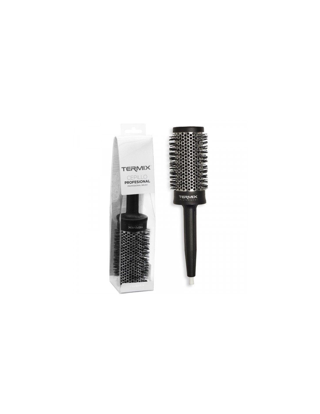 TermixCaracterísticas de Termix - Cepillo térmico profesional Ø43: La gama de cepillos Termix Profesional está inspirada en todos los que piensan en el cabello como signo de identidad. Fabricados con fibras de nylon de alto rendimiento y tubo de aluminio, son perfectos para realizar todo tipo de peinados y elevar la creatividad a la máxima expresión, convirtiéndose en todo un clásico de la marca. Tipo de cabello: El cepillo profesional es ideal para todo tipo y largos de cabellos. Cuánto más grande el diámetro del tubo, más fácil moldearás el cabello largo, o darás mayor volumen a tus peinados.